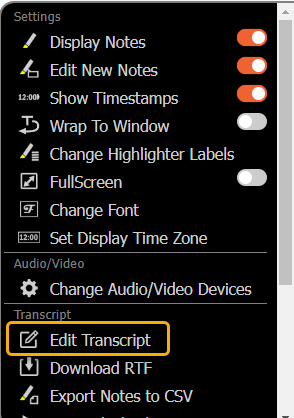 **Edit:** allows the viewer to edit the transcript.