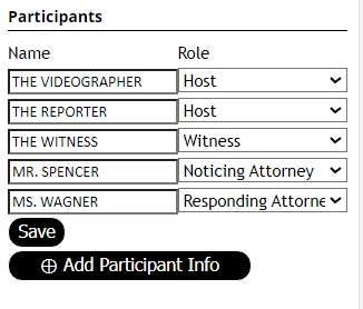 - Step 1: Add Participant Info for each person and assign them a role.