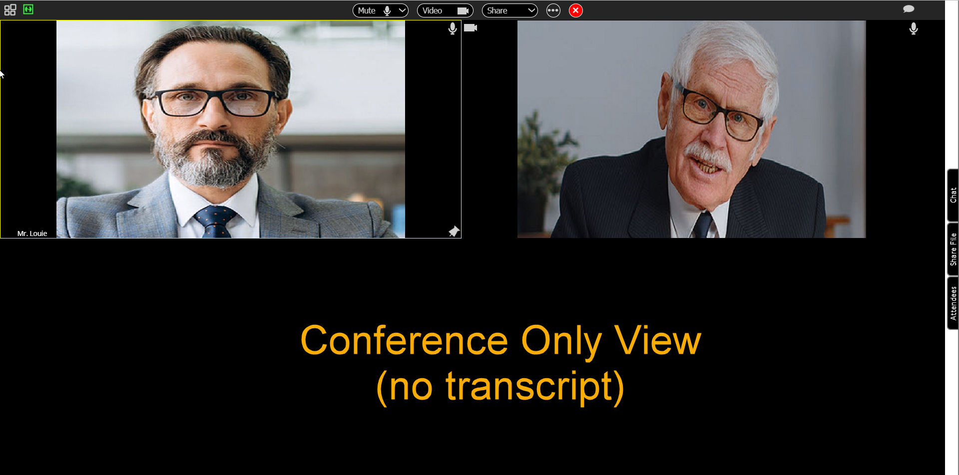 As a witness, deponent, or observer, you may be shown the conference plus transcript view or the conference only view with no transcript. This permission is determined by the attorneys and the host.