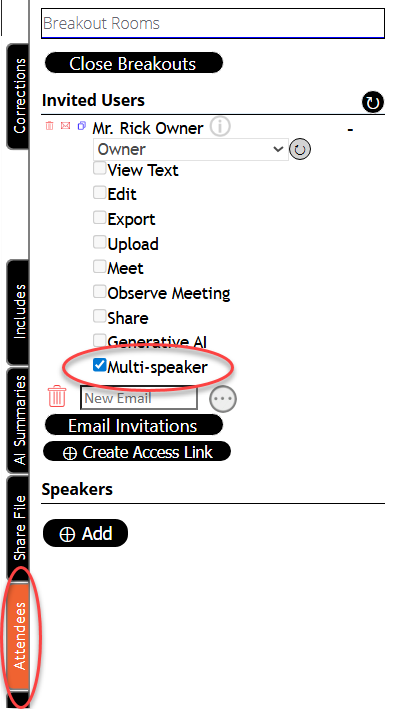 - Turn on multi-speaker from the sidebar, Attendees tab