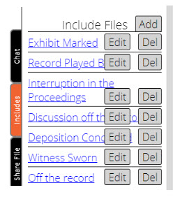 Discussion Off the Record, Exhibit marked, Interruption in the proceedings, Recess taken, or any other blurb chosen by the reporter can be inserted on-the-fly into the transcript.