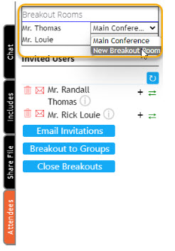 - Select the Attendees tab, then choose the breakout room for each attendee.