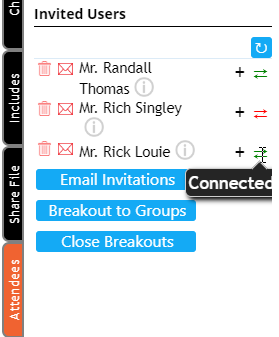 - You can also modify each attendee’s privileges using the expand arrow (circled in red above).