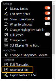 - Rich Text Format is MSWord compatible. Simply double-click the file to open it in Microsoft Word. Download this file either from the 3-dot menu inside the transcript or the Download button on your list of rooms screen.