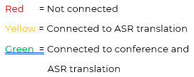 Green indicates the conference is connected. Red indicates conference audio and video are being recorded. When recording, the red audio icon will be flashing.
