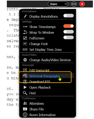 When finished editing a paragraph, press CTRL+S to save and refresh all participants’ transcripts.