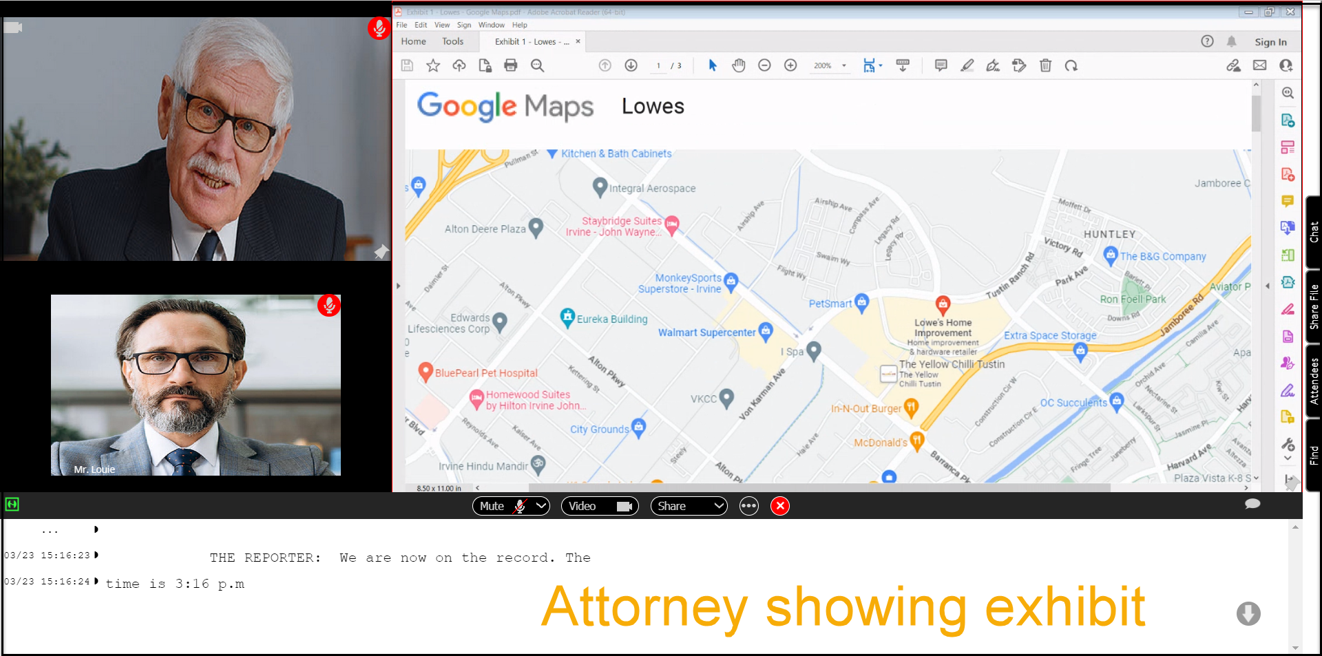 During a deposition, attorneys may present exhibits. You will see them on your screen along with the videos. As a witness, you do not have to perform any functions, but you will be asked questions about the exhibits as they relate to your case.